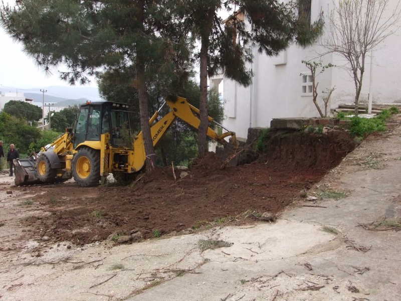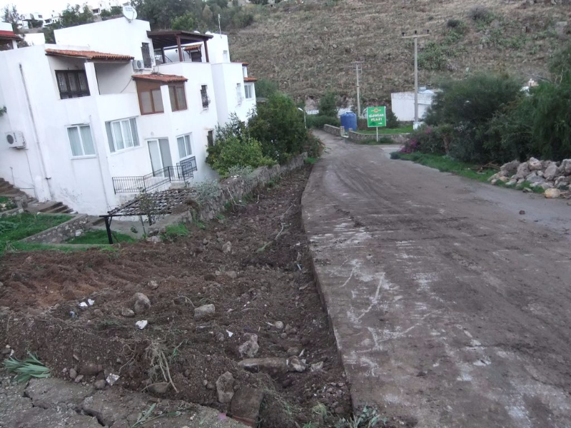 Ilgınlar plajı yanındaki futbol sahasının, Halikarya villaları tarafına yoğun yağışlarda mevcut yola verdiği zararı azaltmak üzere yol boyunca açık hendek açıldı.