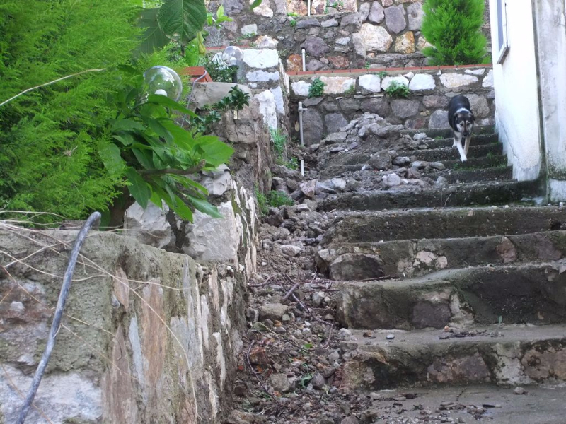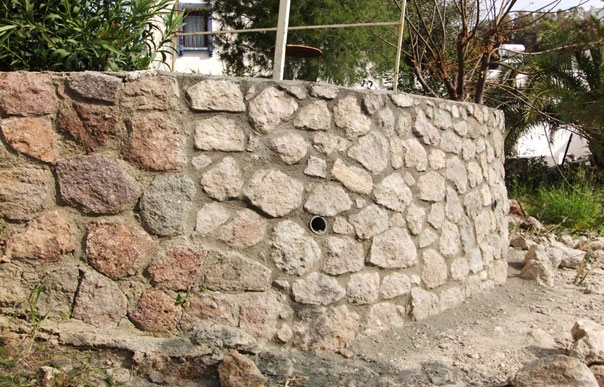 A Bölgesinde A-29 nolu konut yanında ortak alanda bulunan ve daha önce sel suları sebebi ile yıkılmış olan taş duvar yeniden yapıldı