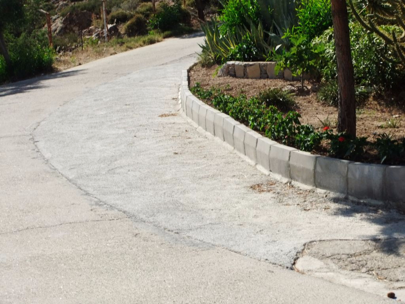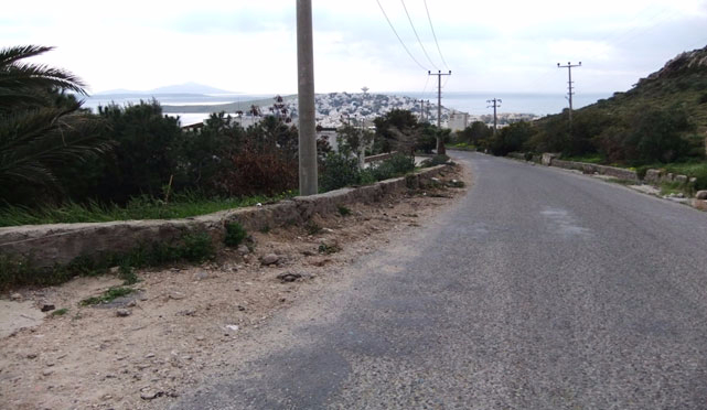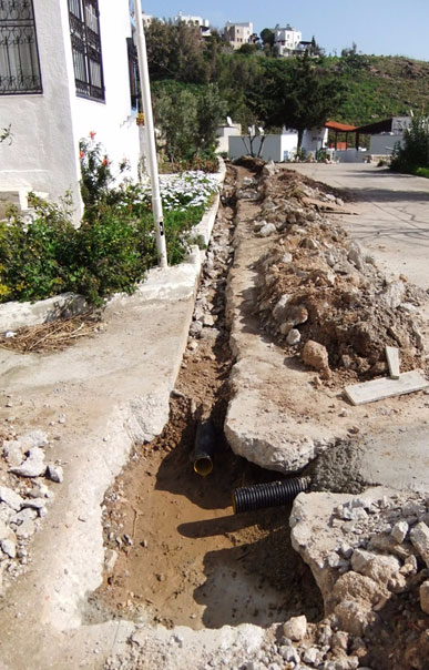 Cadde ( Akyarlar Yolu ) yanı eski taş duvarlar söküldü , yeni taş duvar + küpeşte + tel çit ve kaldırım yapıldı