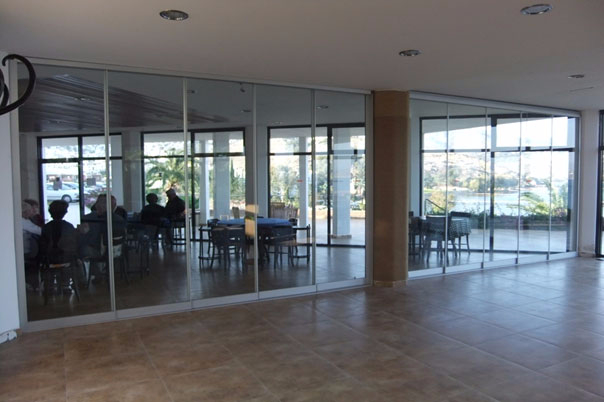 Sosyal Tesis Binasında bulunan Cafe salonu büyüklüğü sebebiyle kışın ısıtılamadığı için cafe salonu sürgülü cam bölme sistemi ile bölünmüştür